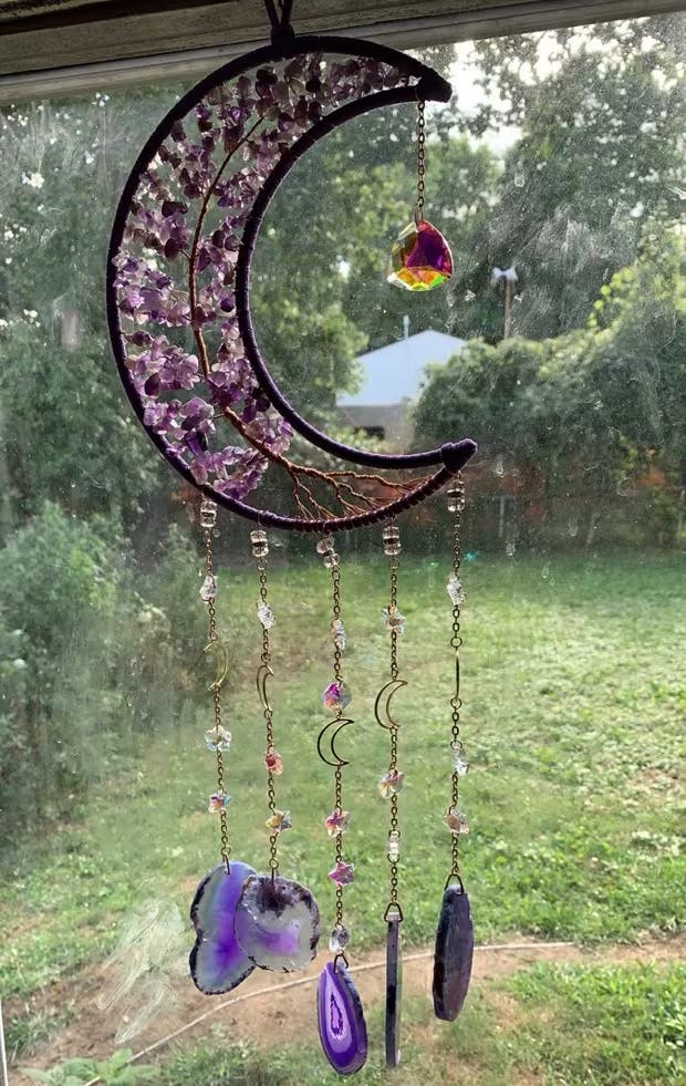 Karry Hardy Very nice! Exactly as pictured. Shiny copper, agate slices are pretty, cute crystal and moon accents.