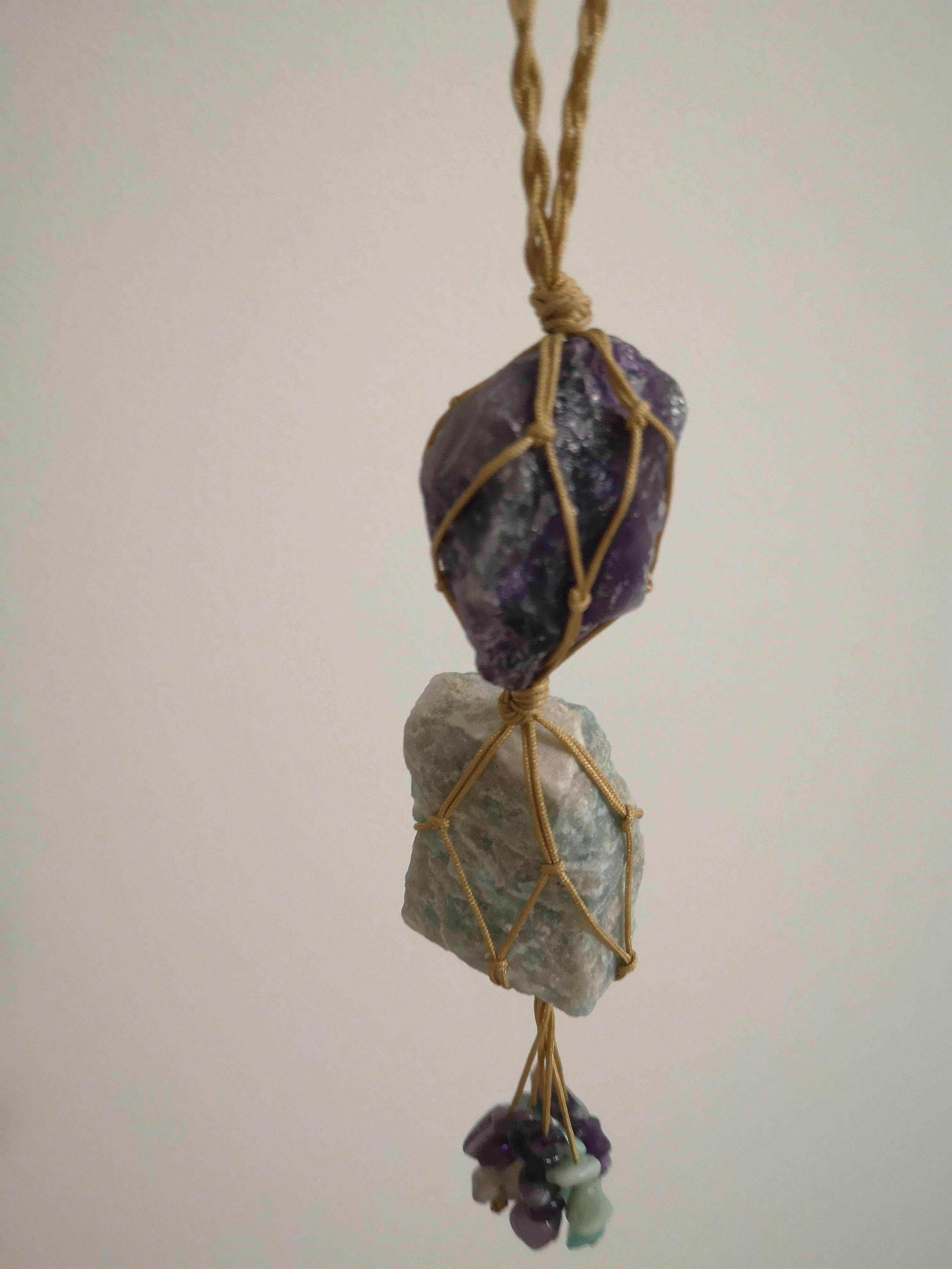 Carry a pocket of peace and confidence wherever you go with the Macrame Raw Stone Bag Charm.